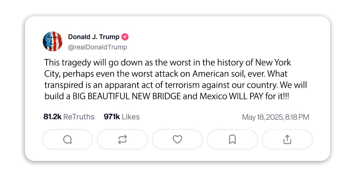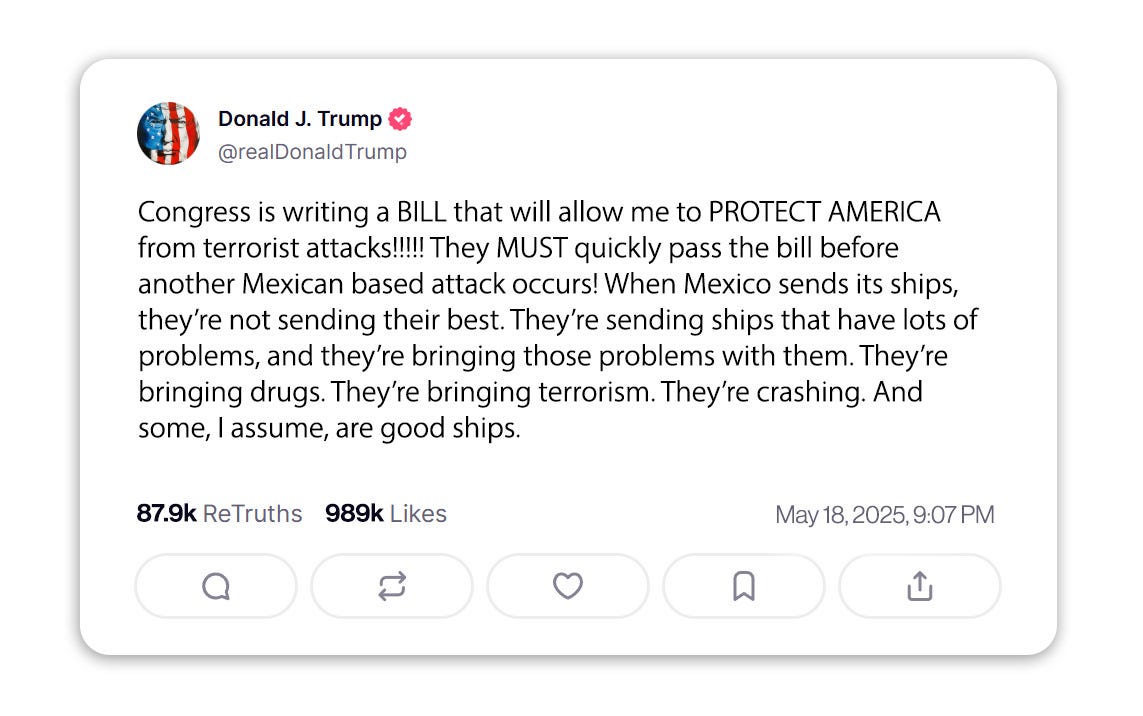 Trump has called on Congress to accelerate voting processes, posting “They MUST quickly pass the bill before another Mexican-based attack occurs” to Truth Social.